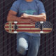 Montrez votre fierté américaine ou offrez un cadeau spécial avec ce skateboard USA American Flag dans un motif de grunge usé en mauvais état sur le bois. Cette conception de skateboard drapeau des Etats-Unis d'Amérique avec des étoiles et rayures en rouge blanc et bleu est parfait pour les fêtes du quatrième juillet, fête commémorative, réunions de famille, remise de diplômes militaires ou cadeaux de retraite et des célébrations patriotiques. Personnalisez cette couverture de drapeau américain avec nom de famille. DROIT D'AUTEUR © 2020 Judy Burrows, Black Dog Art - Tous droits réservés. Tableau de bord personnalisé Rustic Wood Patriotic American Flag