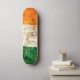 Cet article a le drapeau irlandais dans un style affligé qui est à un léger angle. Le drapeau a les barres vertes, blanches et oranges verticales dans une texture approximative.