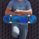 Emballé d'un effet sculpté et de taches bleues laissant graduellement le bleu clair, rappelant ainsi un morceau de métal mat.