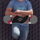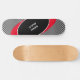 Motif d'échecs noir et blanc, lignes ondulées rouge avec centre noir et calligraphie Skateboard.