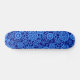 Un skateboard avec un design abstrait intéressant et diversifié, composé de formes circulaires de différents styles reliés par des lignes fines comme un réseau ou un écosystème.