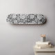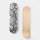 Un skateboard avec un design abstrait intéressant et diversifié, composé de formes circulaires de différents styles reliés par des lignes fines comme un réseau ou un écosystème.