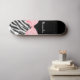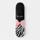 Optez pour le fashionista avec ce skateboard poster de animal chic et élégant. Cet accessoire de mode avec un imprimé zèbre noir et blanc tendance et un ruban rose clair féminin doux attaché à un joli arc girly peut être personnalisé en ajoutant le nom de votre ado fille. Image imprimée plate, pas le ruban réel. Copyright artistique original de ©OhSoGirly