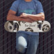Un tablier de skateboard avec des paresseux illustrés sur un arrière - plan bronzé. Le milieu du pont comprend les mots "Trop Lent !". (Parce que vos paresseux sont si rapides.) Les mots peuvent être customisés. Sloth Too Slow Tan Animal Illustration skateboard Jours fériés Design | ©Melissa Patton artiste/illustrateur