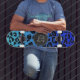 Skateboard Empreinte de léopard bleu électrique ; aspect tabl