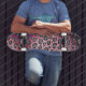 On this trendy skateboard is à ombre shaded pink glossy backdrop with a glittery silver leopard print for extra glam. Exotic glam chic vibes.