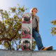 Skateboard Endormez-vous pour rêver Chat noir Fleurs roses ch