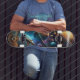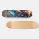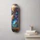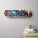 Ce skateboard design, intitulé "Galactic Gears", dresse la beauté impressionnante du système solaire avec la mécanique complexe du steampunk. Le pont présente une représentation vibrante de planètes et d'étoiles, intégrées de manière transparente avec des engrenages, des rouages et des éléments mécaniques qui rappellent les machines de l'époque victorienne. Le design séduit ceux qui sont fascinés à la fois par les mystères de l'espace et par la complexité artistique de l'ingénierie steampunk.