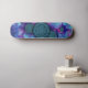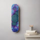 une oeuvre décorative abstraite de mandalas bleues flottant comme des étoiles dans l'espace dans les couleurs bleu et violet sur un skateboard