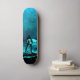 Le surf magnifique d'été dans un néon aiment la tonalité bleue avec un recouvrement grunge. Comporter un surfer avec la planche de surf à disposition, se tenant sur des roches, regardant fixement au-dessus de l'eau comme ressacs donnent un coup de pied autour de lui.