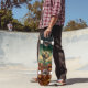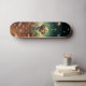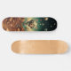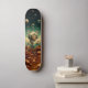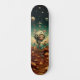 Fantasy anime skateboard. A beautiful girl with an astronaut helmet stands on the ground, holding her camera in front of her face and surrounded by many strange creatures floating around. She is dressed in short sleeves and long legs. The background features water plants, mushrooms, fish swimming in the sea, and the sky has clouds. It's a surreal illustration style full of fantasy, in the style of surreal art. Perfect for wall art.