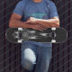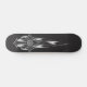 Flaming Gothic cross with skulls is set on a black background and makes one wicked skateboard.