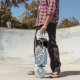 Planche à roulettes dépeignant la géométrie sacrée accompagnée du graffiti de la dernière page de "mon premier livre de coloriage de graffiti."