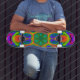 Skateboard Fleur hippie psychédélique arc-en-ciel