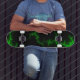Skateboard Frappes de foudre verte Alien en Pitch noir