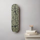 Un skateboard avec un design vectoriel géométrique abstrait composé de lignes et de formes polygonales.