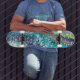 Peinture originale aquarelle de Sandra Gale, avec un design abstrait aité de peintures d'aquarelle bleu outremer, jaune citron et violet violet, se mélangeant pour créer cette combinaison de couleurs humoristique et riche, mais douce. Un art d'aquarelle humide très cool et unique, qui s'apparente à merveille sur un skateboard, un coussin, des leggings, des modes et des achats réutilisables ou des sacs de sport.