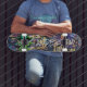 Skateboard Graffiti personnalisé Pirate vert crâne et croix