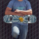 Skateboard Grandes Fleurs bleues et jaunes Motif sans couture