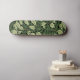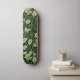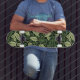 Un imprimé feuillage avec un feuille vert clair presque olive ou sage entrelacé dans des verts plus foncés. Une ombre de vert chasseur ou de vert foncé de forêt crée la grande majorité des feuilles. Sur un arrière - plan de noir.