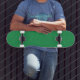 A textured green background with a subtle, swirling pattern resembling marble or soft fibers, creating a calm and soothing visual effect.