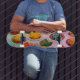 Des grenouilles carnavalesques amusantes figurent sur cette écharpe d'inspiration rétro.