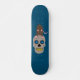 Ce magnifique skateboard est doté d'un crâne gris déplaisant avec des yeux bleus et des dents jaunes pourrissantes. Sur le dessus du crâne est un rat marron avec oreilles roses, queue, pattes et nez et yeux bleus, Le rat a un dos arqué prêt à sauter vers vous. Un grand design pour les amateurs de rat et pour Halloween.