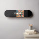 Ce skateboard chic d'inspiration Art Déco présente une photo d'une élégante dame. Les couleurs sont le bleu, l'orange, le violet et le jaune, juxtaposés à une atmosphère géométrique pour un effet vibrant. Personnalisez le skateboard avec vos initiales sous l'image. Un cadeau idéal pour les amateurs de style rétro et de skateboard.