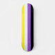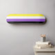 Les personnes non binaires peuvent s'identifier comme ayant au moins deux sexes; sans sexe; le passage d'un sexe à l'autre ou la fluctuation de l'identité de genre; ou être un troisième sexe ou un autre sexe, une catégorie qui comprend ceux qui ne portent pas de nom à leur sexe. Chaque couleur de bande représente différents types d'identités non binaires: Jaune pour les personnes qui s'identifient en dehors du binaire de genre, blanc pour les personnes non binaires avec des sexes multiples, violet pour celles avec un mélange de sexe masculin et féminin, et noir pour les personnes de sexe masculin.