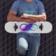 Infinity symbole with a beautiful feather painted in purple and blue bright colors on white background