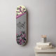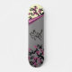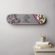 Inséparables Sur Sakura Tree Et Chinese Love Symbol Skateboards. Un skateboard à l'allure asiatique avec deux inséparables sur un sakura fleuri avec des fleurs violettes sous une page grise et courbée d'un côté, un autre sakura de l'autre et le symbole d'amour chinois au milieu.