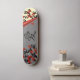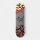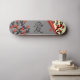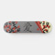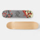 Inséparables Sur Sakura Tree Et Chinese Love Symbol Skateboards. Un skateboard à l'allure asiatique avec deux inséparables sur un sakura fleuri avec des fleurs rouges sous une page grise, recouverte de cailloux d'un côté, un autre sakura de l'autre et le symbole d'amour chinois au milieu.
