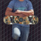 Skateboard Japanese Style Retro Teal Floral n Clouds Initial
