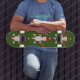 Ce superbe skateboard présente une image art numérique d'un joli Axolotl de Noël. L'Axolotl est rose pâle avec des branchies rose vif. Il tient un sucre de canne rayé rouge et blanc dans chaque main et porte un chapeau festif de Père Noël rouge et blanc. L'axolotl est le type de Salamander du Mexique.