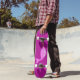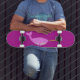 Ce skateboard génial présente une image art numérique d'une jolie petite fille rose magique Narwhal. Le corps principal du Narwhal a une texture rugueuse et est rose vif tandis que le ventre est rose pâle. Le Narwhal a un oeil noir avec une pupille rose pâle et une corne dorée brillante sur le visage. Il a aussi une queue délicate et des palmes.