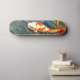 Peinture d'un poisson koi orange, jaune et blanc et d'algues bleues oeuvre japonaise.