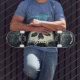 A horrible laughing human skull against the dark background. The customizable template name "Christopher". You can change or delete the name. To change the color and the position of the text, to change the type of the font, please, use the "Edit Design" button or "Click to customize further" link under "Personalize this template" option. Elegant skateboard for your outdoor activity.