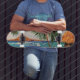 le skateboarding rappelle une personne qu'ils sont dans les tropiques avec une plate-forme fraîche de planche à roulettes
