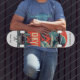Colores intensos en rojo, azul y blanco que transmiten fuerza, modernidad y cultura urbana.
