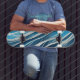 Skateboard Lignes fluides blanches et bleues avec texture