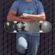 La patineta presenta un diseño específico, representando lobos salvajes. La escena evocada es de noche, con la presencia de una luna en el cielo. La combinación de elementos sugiere una imagen visualmente impactante, donde la silueta de lobos salvajes en la patineta se destaca en medio de la oscuridad nocturna, iluminada por la luz de la luna. Este diseño evoca un ambiente misterioso y salvaje, creando una sensación única para aquellos que observan la patineta.