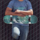 Skateboard Loup bleu marine moderne bleu vert aquarelle