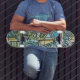 Hip Cool d'ouverture Skateboard avec Bauhaus moderne Art géométrique en vert gras et bleu