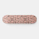 Ce skateboard a une variété de différentes lunettes et lunettes cadres en noir et blanc sur un rose pâle.