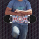 Skateboard Mandala Géométrique Abstrait Motif Bleu Rouge Noir