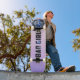 Patinage moderne abstrait de Bad Girl. Rose, bleu violet, gris, noir, blanc. Accessoire de sport de rue moderne et tendance.