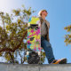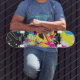 Graphique de style rétro 80s avec des formes simples avec des couleurs audacieuses sur des skateboards.