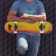 Prenez un peu d'air et flottez comme une abeille avec ce pont urbain moderne jaune et orange. Art de rue avec motif peigne de miel. Monogramme avec vos initiales de lettre dans une police de type grunge. Que vous soyez un surfeur de trottoir, un cycliste de rue ou un amateur de la demi-pipe, vous vous démarquerez avec votre propre planche à air unique.