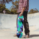 Skateboard Motif Abstrait de fluides bleu, cyan et noir