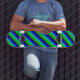 Skateboard Motif arc-en-ciel bleu vert abstrait 3D